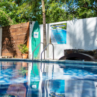Acceso a piscina y áreas comunes en un ambiente familiar.